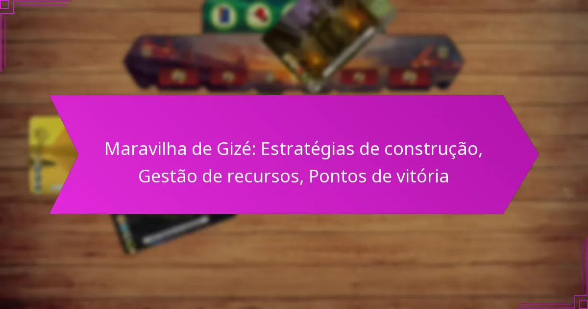 Para maximizar os pontos de vitória da Maravilha de Gizé, os jogadores devem focar em condições específicas que aumentem a sua pontuação. As condições-chave incluem: